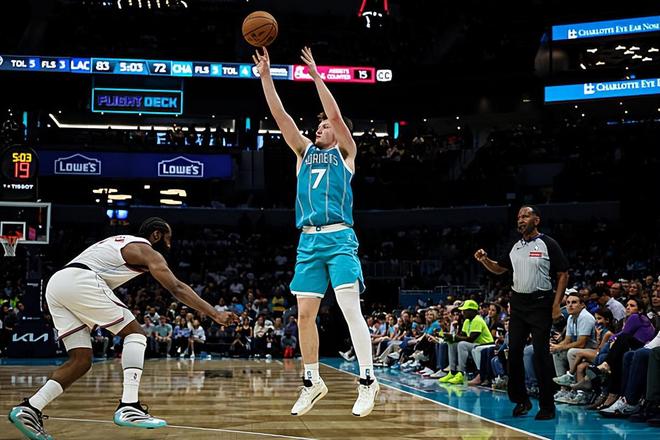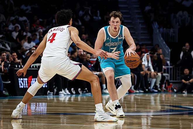 本场比赛中,黄蜂虽然又一次输掉了比赛,但是球队的先发侧翼新秀康-克尼佩尔(Kon Knueppel)的表现依然是非常突出的。克尼佩尔全场出场34分08秒,投篮12中9,三分线外9中6,罚球2中2,得到了全队最高分26分外加1篮板1助攻1抢断的数据,还有2次失误和4次犯规,正负值为-12。克尼佩尔在进攻端展现出了全面的得分能力,他有着相当出色的投射能力,命中了大量的外线投篮,他还具备一定的持球进攻能力,他在进攻端的能力绝对是被严重低估了。不夸张地说,克尼佩尔的个人能力在目前的黄蜂绝对是数一数二的水平,甚至可以说他绝对是快船眼中黄蜂最大的威胁点了。如果他能够得到更多的球权和更高的战术地位作为支持,他的数据还能够更上一层台阶。