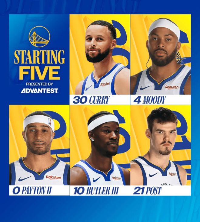 今天比赛,首发阵容方面,勇士队这边,格林脚部扭伤、霍福德坐骨神经刺激缺阵,库明加膝盖无碍但也不打,科尔临时变阵排出的最新首发五人组为:斯蒂芬-库里、摩西-穆迪、小佩顿、吉米-巴特勒、波斯特;爵士队这边,首发阵容则为:基扬特-乔治、埃斯-贝利、斯维亚托斯拉夫-米哈伊柳克、劳里-马尔卡宁和优素福-努尔基奇。