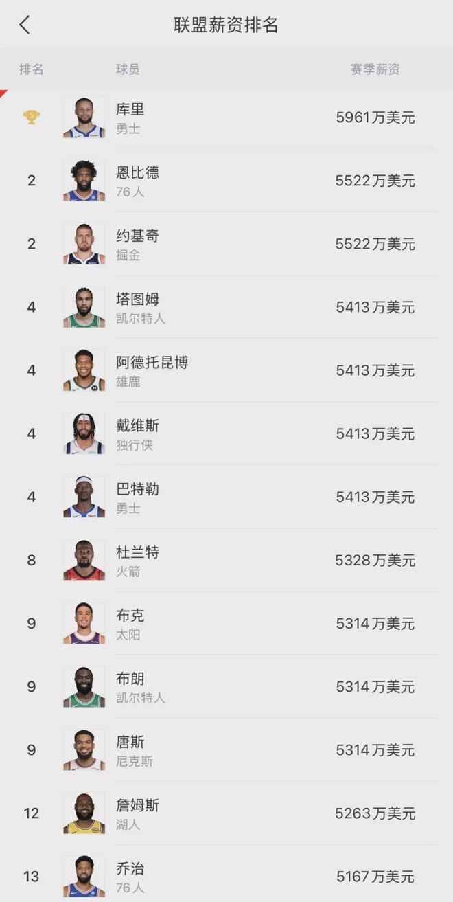 恩比德本赛季薪水5522.5万美元,高居联盟第2,仅次于库里(5961万)。乔治本赛季薪水5166.6万美元,排名联盟第13。结果恩比德本赛季只打了6场比赛,乔治仅出战3场比赛。这哥俩的年薪加起来1.07亿,本赛季还没合体过。