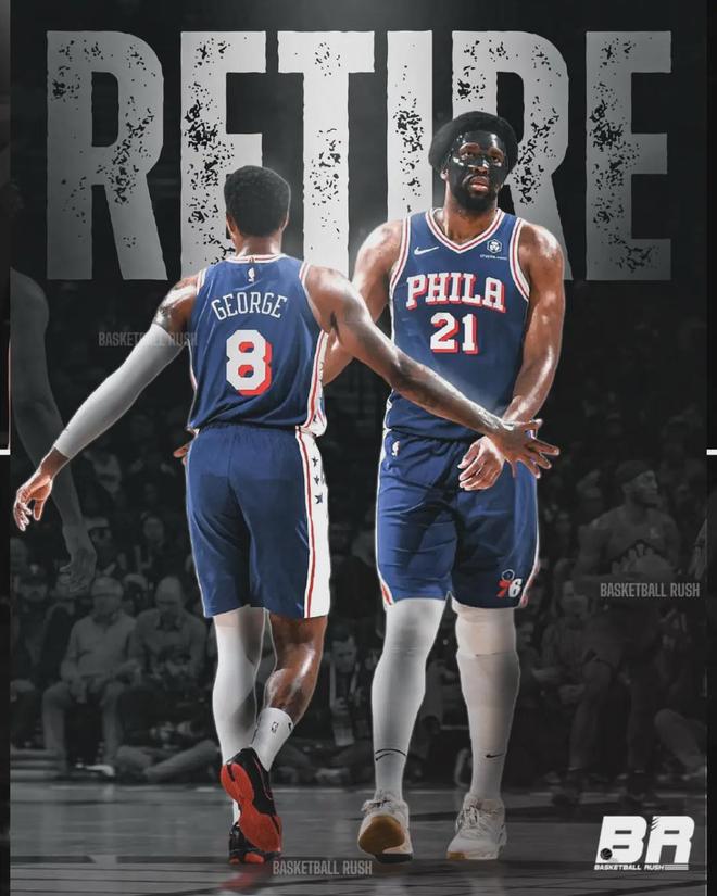 很多球迷呼吁乔治和恩比德直接退役吧!恩比德合同2029年夏天才能到期,未来三年的薪水分别是:5964万、6430万、6903万。乔治合同2028年夏天到期,未来两年薪水分别是5413万和5696万。两人年薪之和,奔着1.2亿去了。