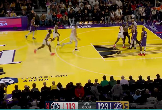 北京时间11月26日,NBA杯小组赛,湖人主场对阵快船。两队前2轮都取得胜利,这次上来两队早早进入状态,东契奇连续拿分帮助球队占据主动,快船则多点开花,两队进攻端你来我往,分差一直没有拉开,半场湖人领先3分;下半场湖人一度拉开分差,可快船很快追上比分,不过末节湖人再次占据主动,最终以135-118击败快船。