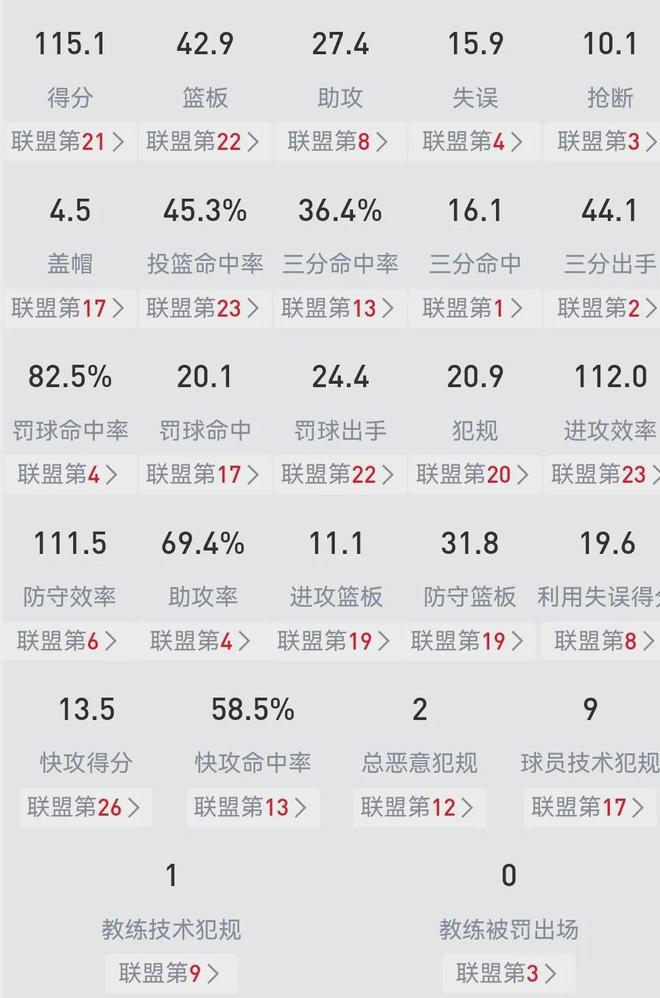 勇士本赛季的发挥不尽人意,尤其本来拿手的进攻迄今为止场均得分才115.1分排名联盟第21,场均投篮命中率45.3%联盟第23,倒是场均三分命中数16.1次高居联盟榜首&三分命中率36.4%联盟第13,场均篮板42.9个联盟第22......