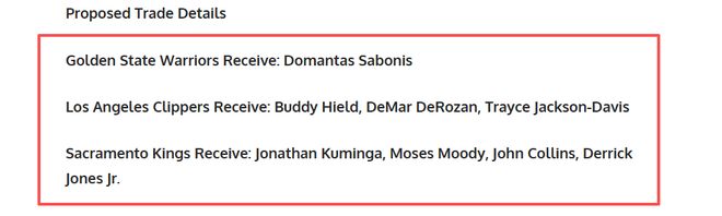 新赛季开打已经一个月,西部的形势也渐渐清晰,雷霆豪取10连胜,赛季至今仅有一败!湖人、掘金、火箭都展现出不俗的实力。而一些老牌则陷入挣扎,金州勇士以10胜10负徘徊于西部中游,洛杉矶快船在5胜13负的泥潭中挣扎,萨克拉门托国王更是拿到5胜14负战绩深陷重建迷雾,强队战绩越来越出色,让一些想要染指季后赛的球队,不得不考虑通过交易改变球队的现状!美媒露天看台,提出一笔涉及三大球星的三队交易构想,其中小萨博尼斯、库明加、德罗赞的互换东家,有望改变三支球队的现状。