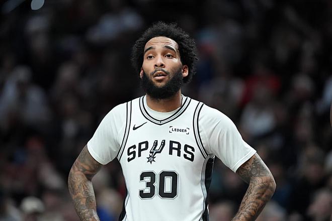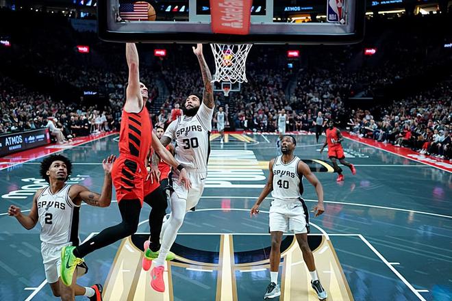 本场比赛中,马刺的先发锋线大将朱利安-尚帕尼(Julian Champagnie)的表现还是相当不错的。尚帕尼全场出场32分18秒,投篮10中5,三分线外5中2,得到了12分11篮板2助攻2盖帽的两双数据,还有1次失误和1次犯规,正负值为+10。尚帕尼在进攻端还是保持了稳定的水准,他的进攻效率相当不错,他也具备不错的投射能力,他也是能够在进攻端起到比较全面的效果。不仅如此,尚帕尼在防守端的表现也是值得肯定的,他也是发挥出了自己在防守端的功能,在篮板保护甚至是内线防守方面都起到了不错的效果。总体来看,尚帕尼在本场比赛中的表现算得上是攻守兼备,他确实是将自己在攻防两端的特点都充分发挥了出来,并且为球队的胜利做出了巨大的贡献。